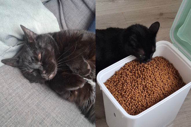 🠚 Brokjes aangevuld en dan moet Bengel altijd even een hap uit de bak nemen 😹