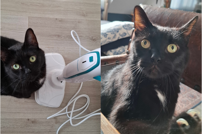 Bengel bij mijn nieuwe stoomdweil. Altijd lekker nieuwsgierig.
