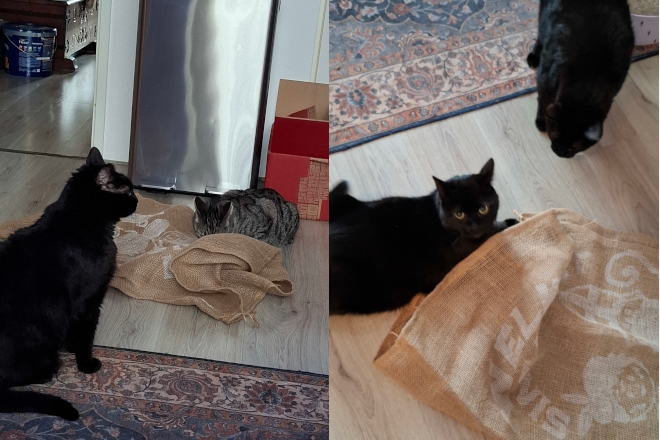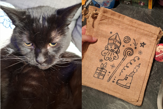 De katten gingen helemaal los op de jute Sinterklaas zak. 😹