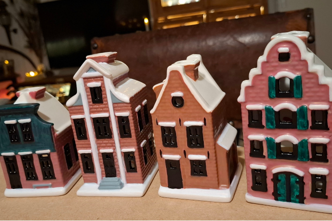 Met Wessel samen de rode kersthuisjes van de Postcodeloterij geverfd in andere kleuren (bezigheidstherapie) en ik vind ze erg leuk geworden.