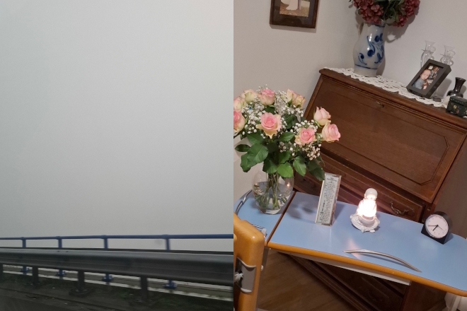 De dag erna zou ik met mama naar Duitsland gaan voor de boodschappen, maar die moeten ineens van alles regelen voor de uitvaart. Dus ga ik samen met mijn zusje naar Duitsland, waar het natuurlijk super druk is door de kerstvakantie. We namen een bloemetje mee voor bij oma.