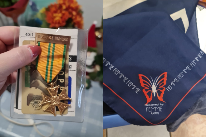 π Voor wie mij langer volgt weet dat ik met mijn zusje de 4Daagse loop. Opa heeft hem vroeger ook gelopen (al 32 jaar dood) en oma had Bo het 4Daagse kruisje van opa beloofd, maar.. we hebben alles afgezocht en hem nooit gevonden. Zelfs niet toen oma een paar maanden geleden van haar huis naar het verzorgingshuis over verhuisde. Na de dienst van oma zijn we nog naar oma’s woning gegaan, om alvast wat spullen op te ruimen en wat denk je? Onderin een mand met sjaals, in een envelop zat het 4Daagse kruisje van opa! We kregen er kippenvel van.