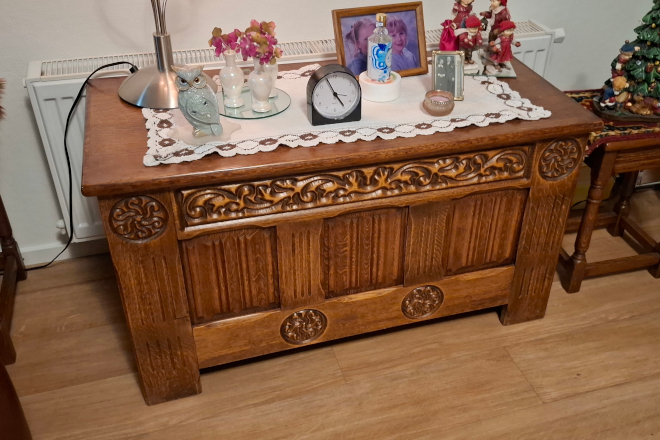 Deze dekenkist die van oma was krijgen Wessel en ik voor in huis.