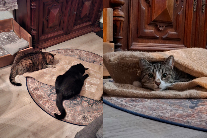 De jongens waren erg blij met de juten zak, helemaal in combinatie met wat catnip. πΉ