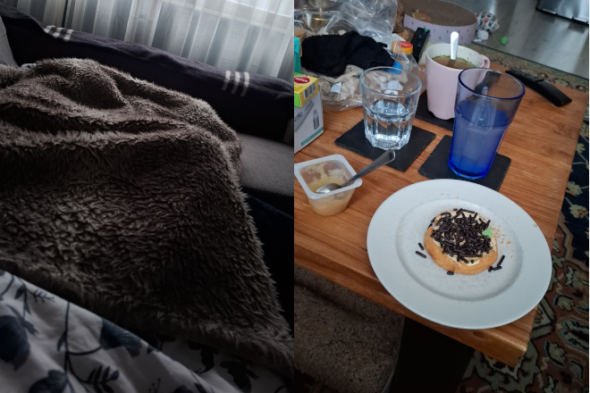 ๐Ÿ šย Oudjaarsavond zou de moeder van Wessel bij ons komen, maar we zijn allebei zo ziek dat we alleen thuis blijven in pyjama op de bank.