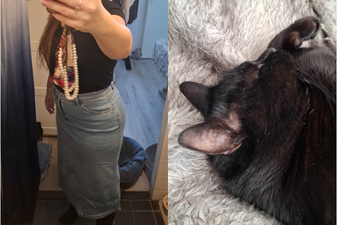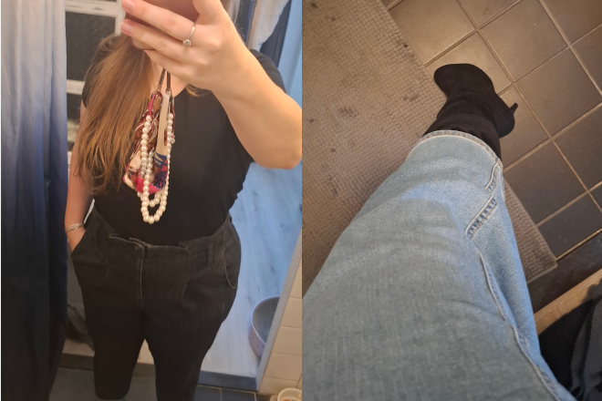 ๐Ÿ š Ik scoorde een nieuwe broek (mom jeans model), een zwarte thermo skinny jeans (niet op de foto) en een lange high waist spijkerrok.