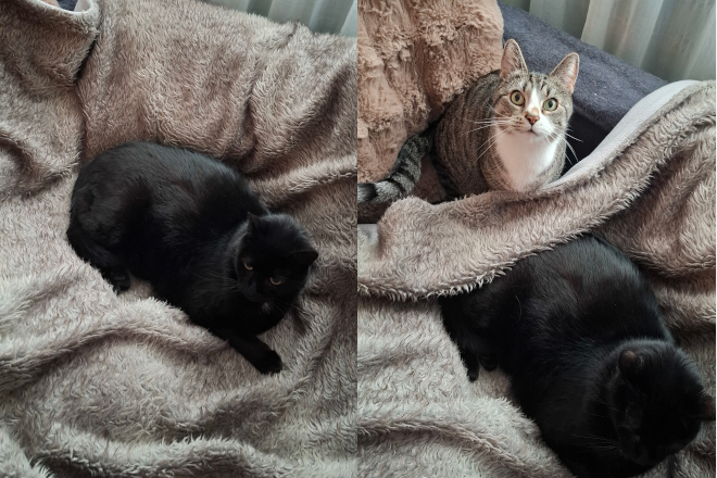 ๐Ÿ š Boefje was op de plaid geploft, maar had niet door dat hij half op Mickey was gaan liggen die onder de plaid lag.