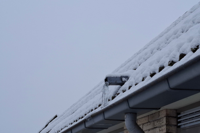 Ook aan het pijpje van de dakgoot hingen de ijspegels. โ„๏ธ