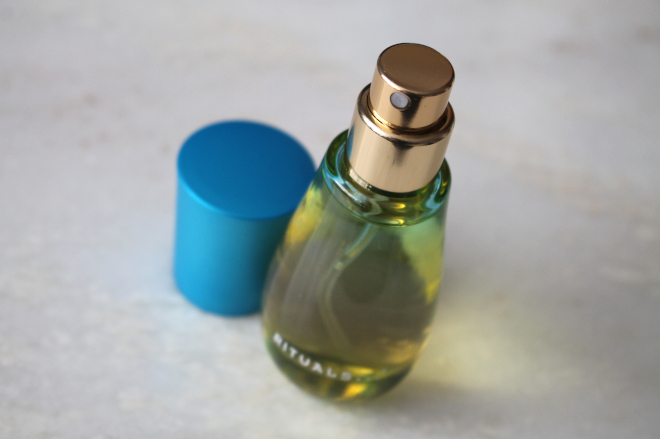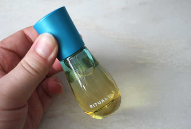 Ik moest even wennen aan de geur van The Ritual of Seshen. Het is een frisse geur die perfect past bij de warme zomermaanden. De eerste tonen van de parfum vind ik persoonlijk niet wauw, maar zodra dat vervlogen is vind ik het een erg lekkere geur (kan overigens bij iedereen wat anders ruiken op de huid door je pH waarde). Ik heb hem opgespoten en toen dacht ik ‘nee, dit wordt hem niet‘. Ik heb hem een tijd laten zitten en even later vond ik hem juist wel erg lekker ruiken op mijn huid. De verpakking is vrij simpel met een blauw-geel kleurverloop en een blauwe dop.