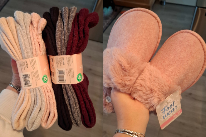Lekkere fluffy sokken voor mezelf en de Uggs look-a-like sloffen in het roze. β¬4,95