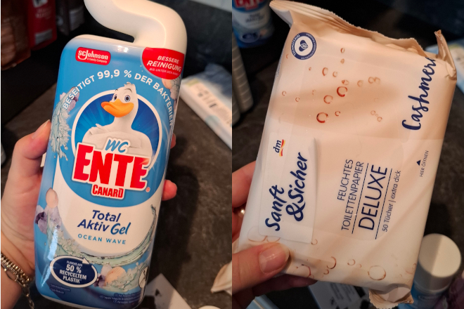 Wc reiniger gel β¬? en vochtige billendoekjes β¬1,25 (ik vind deze fijner dan de Page Puppy, want deze zijn net wat groter).
