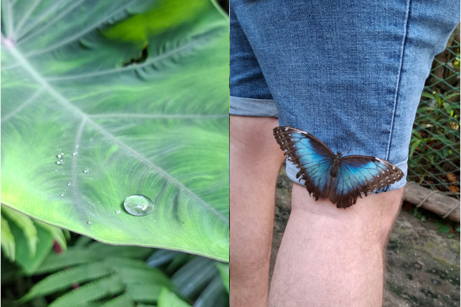 Met Wessel naar Burgers Zoo, waar een vlinder op zijn broek kwam zitten.
