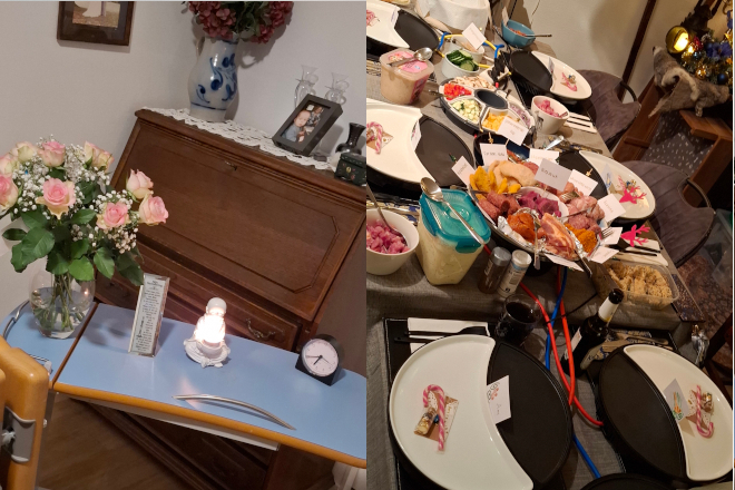 Oudejaarsdag haal ik nog wel oliebollen op bij mijn ouders die ze elk jaar zelf bakken, maar verder doen we niks, omdat we allebei nog ziek zijn.