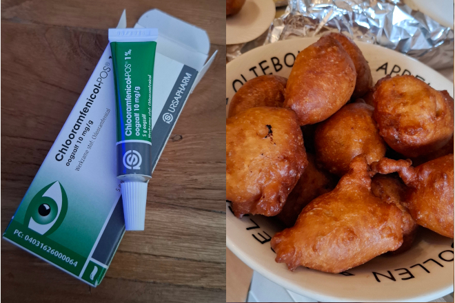 Tussen kerst & oud en nieuw zijn Wessel en ik allebei ziek (Wessel was eind november sowieso al genekt door acute spit), maar Wessel krijgt er ook nog een flinke oogontsteking bovenop. Dus ik ben oogzalf met antibiotica gaan ophalen voor hem bij de apotheek na telefonisch overleg met de huisarts (en foto’s gemaild te hebben).