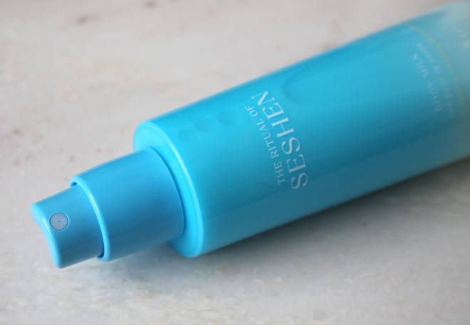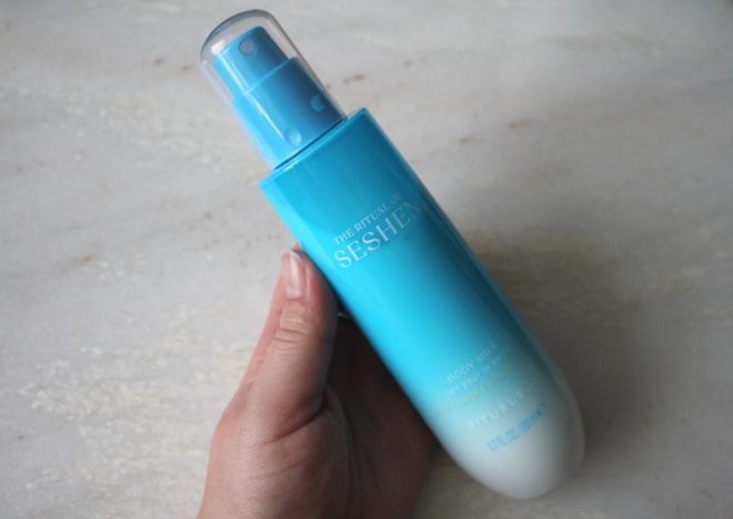Uit de nieuwe limited edition: The Ritual of Seshen kocht ik ook nog de bodymilk spray. Een ultralichte bodymilk spray, verrijkt met koudgeperste oliΓ«n, die doet denken aan een zachte zomerbries en hydrateert als een droom. Laat de verfrissende nevel je huid voorbereiden op zonovergoten dagen.